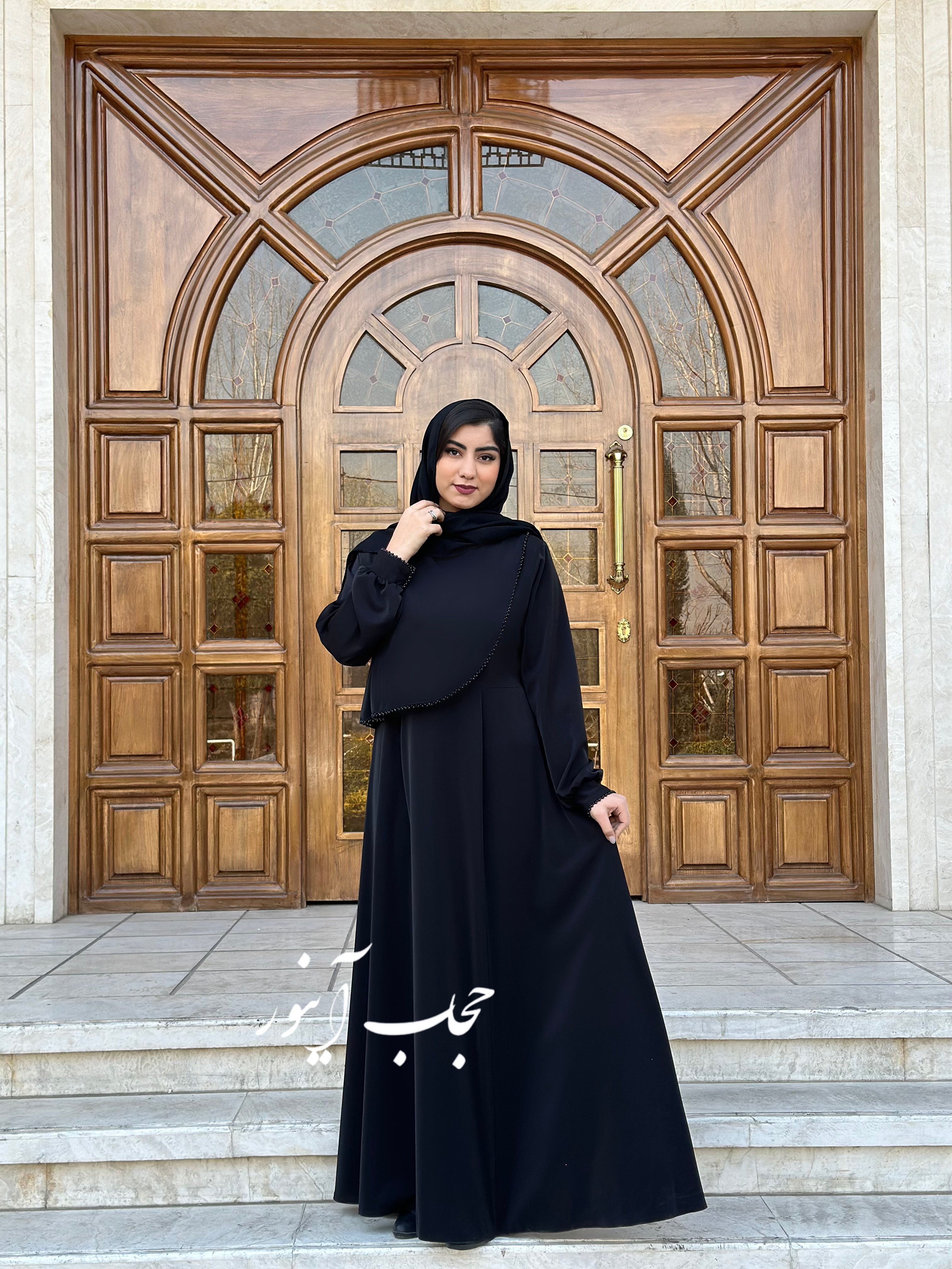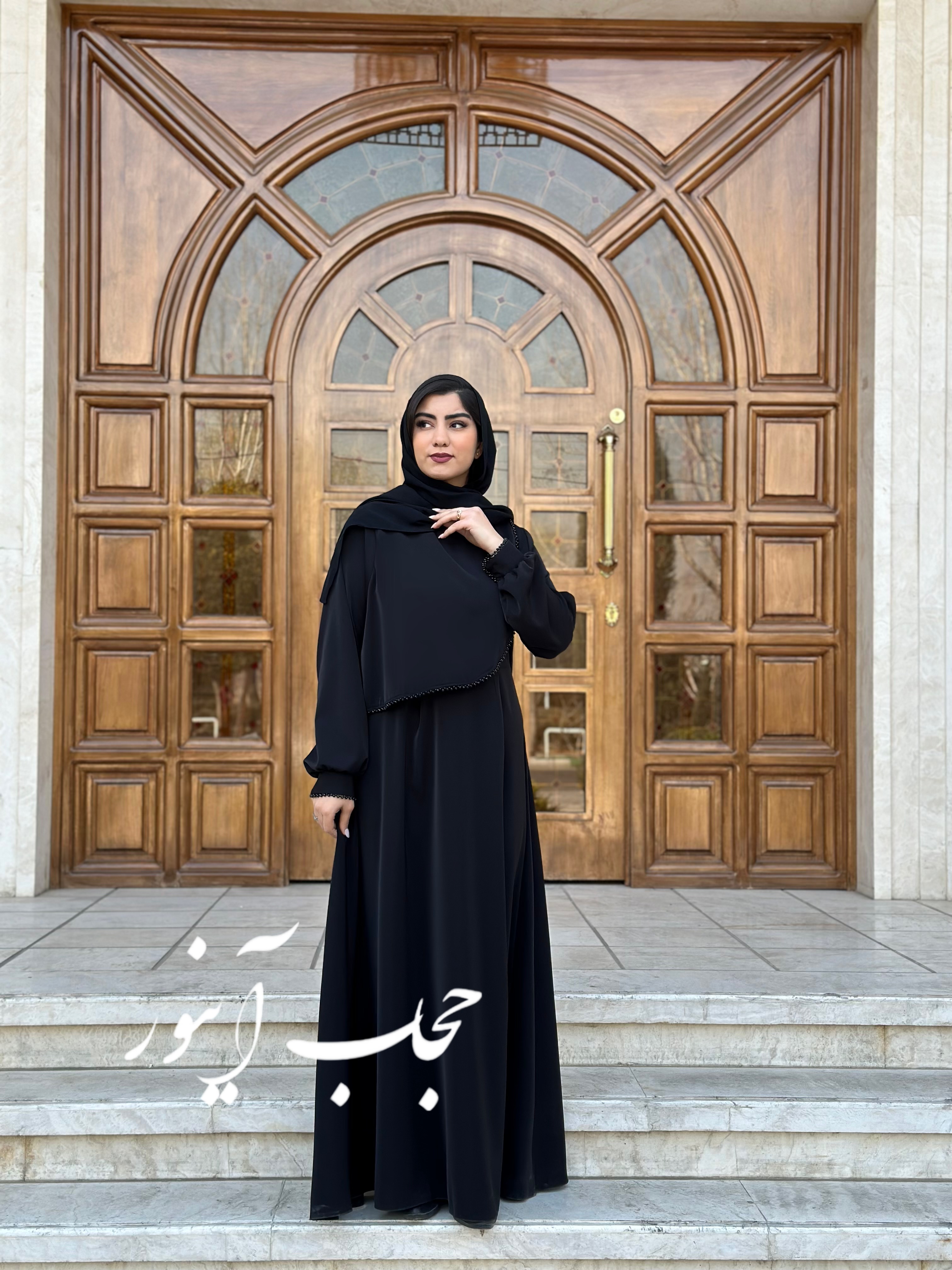 عبای مجلسی فری سایز ، بندتنظیم دار کرپ الیزه دلوان