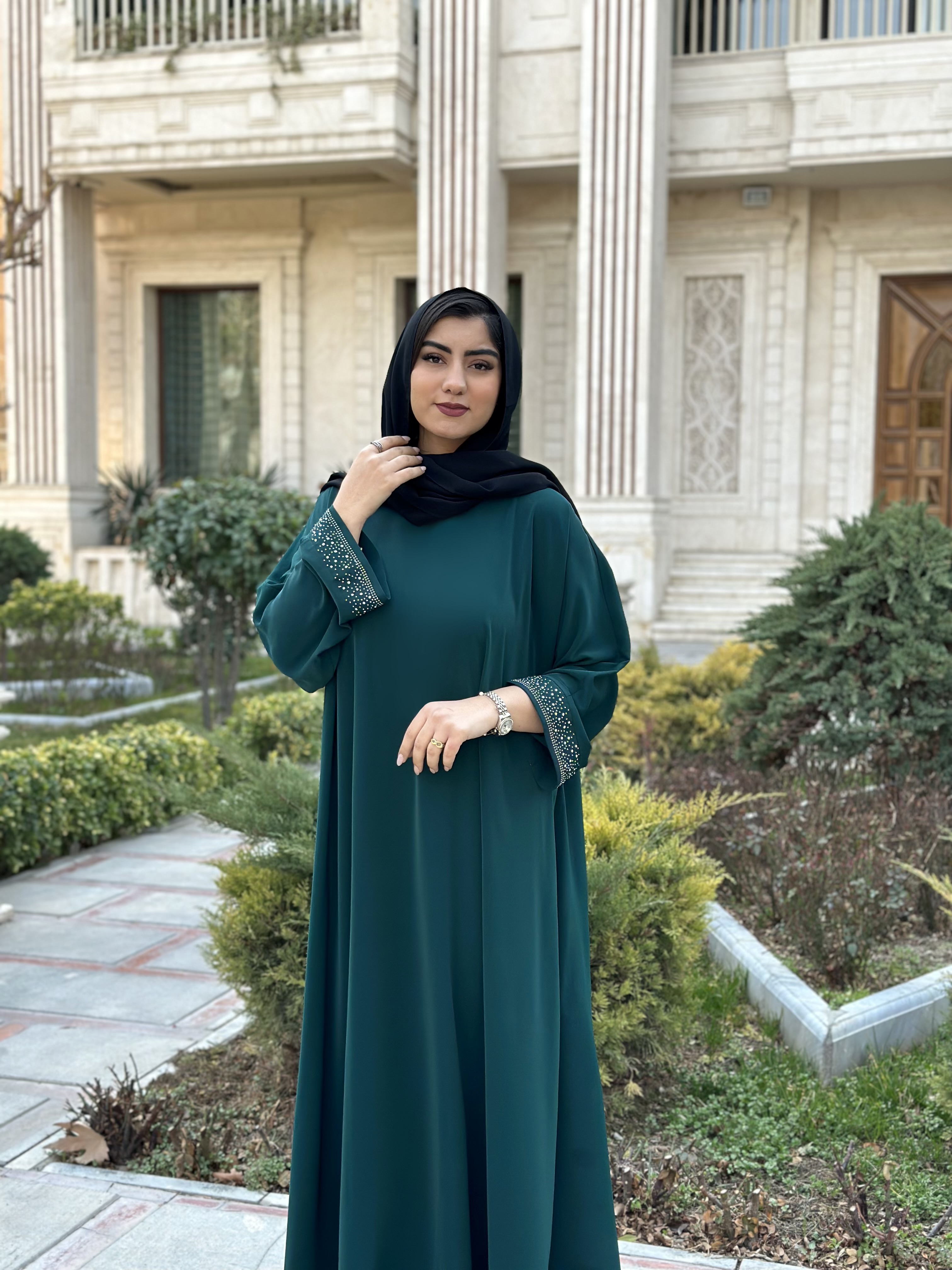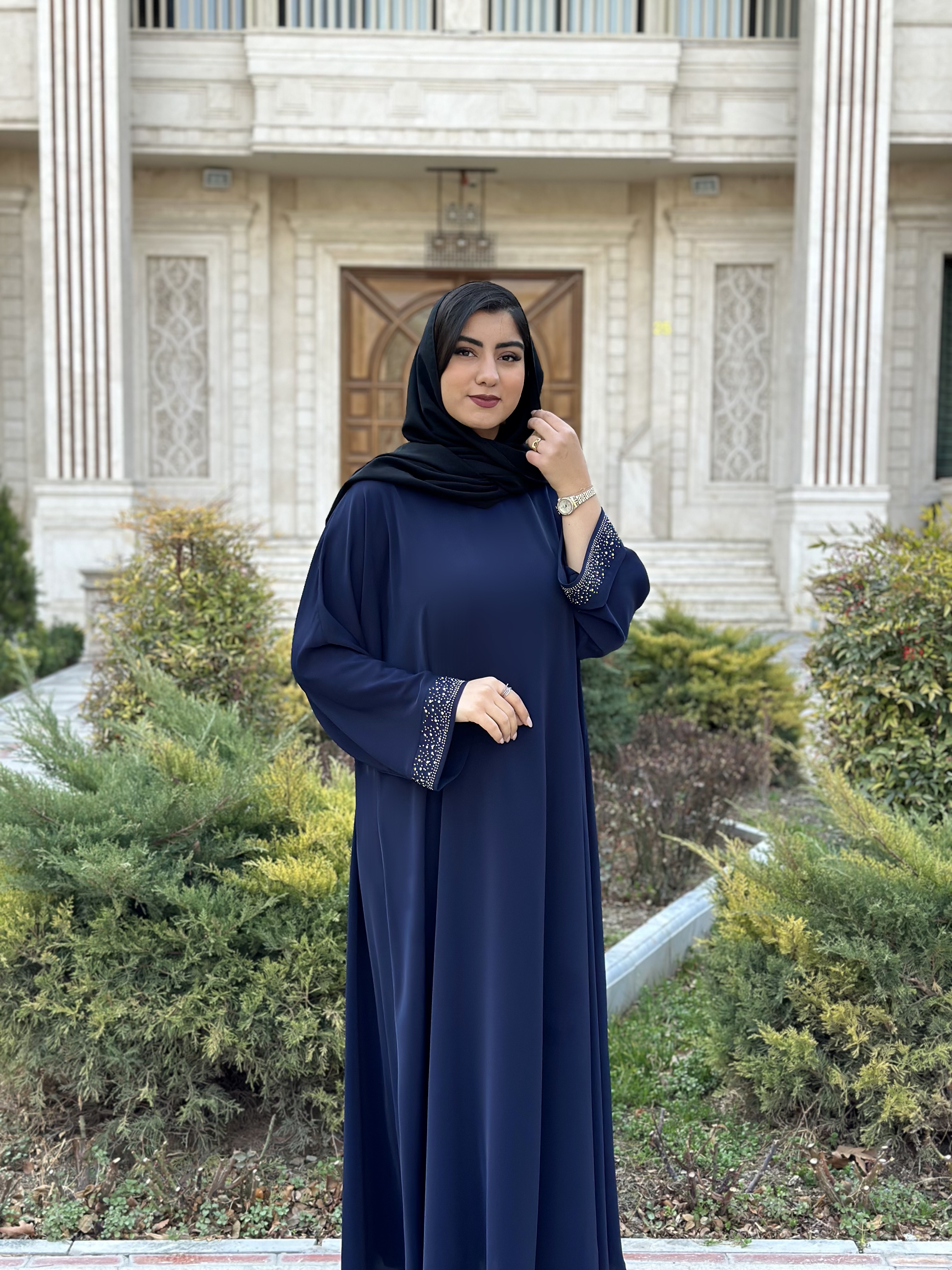 عبای سوپر لوکس مجلسی با استینای نگین کاری شده مجلسی اماراتی با قد ۱۴۰ و بندتنظیم دار می باشد